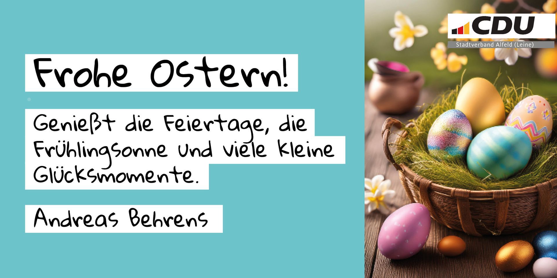 Am 21. März waren zahlreiche Mitglieder des CDU-Stadtverbandes mit mir vor Ort in der Innenstadt von Alfeld. Mit unserem Infostand konnten wir viele Bürgerinnen und Bürger ansprechen und mit vielen von ihnen interessante und freundliche Gespräche zu aktuellen Themen führen. Und als kleine Aufmerksamkeit gab es einen Ostergruß für alle Interessieten.